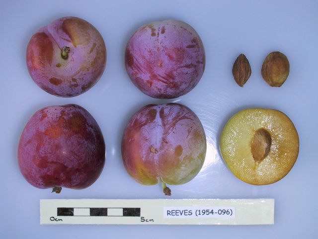 Originated in Chilliwack, British Columbia, Canada by A. Reeves. It was introduced in about 1940. Fruits have moderately firm, very juicy flesh with a sweet, rather watery flavour. A good quality dessert plum.